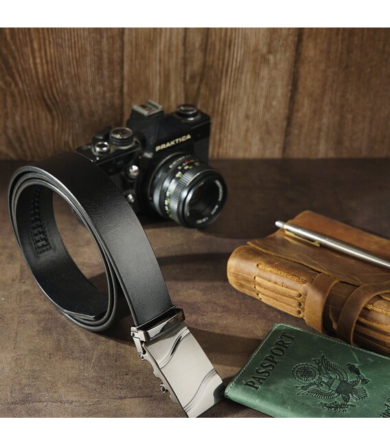 Описание Ремень мужской c затемненной пряжкой волна Vintage 20250 Черный