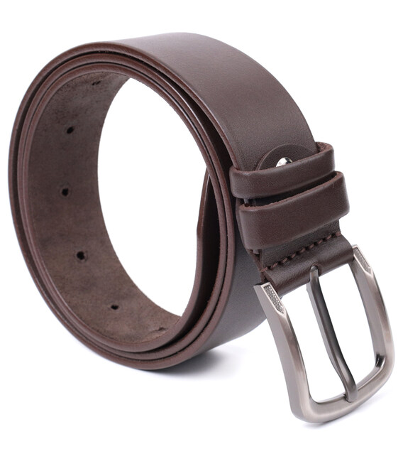 Мужской кожаный ремень коричневого цвета. Изделие выполнено из натуральной кожи. Пряжка - темного цвета. Модель прекрасно подойдет под любой образ. Качественный ремень - обязательный элемент гардероба любого мужчины. Аксессуар прекрасно подойдет в качестве подарка для любого мужчины.
