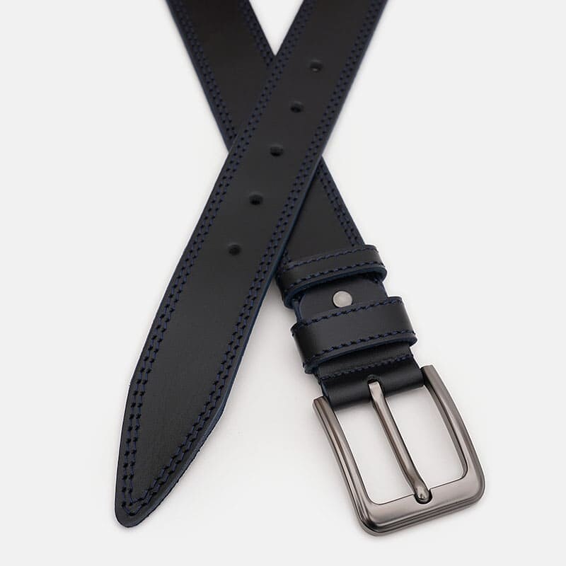 Мужской кожаный ремень. Качественные материалы, стильная пряжка и аккуратный внешний вид. Ремень выполнен из натуральной кожи и металлической фурнитуры. Лицевая сторона ремня защищена от влаги, жира и агрессивных сред. Уход – минимальный (сухая чистка). При необходимости, ремень можно укоротить самостоятельно до нужной вам длины.