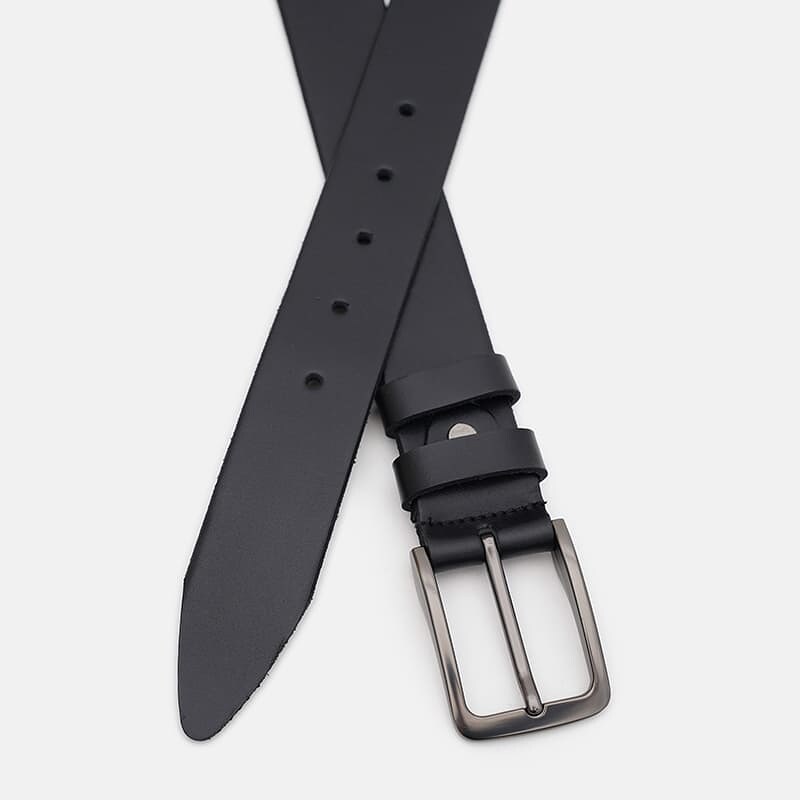 Мужской кожаный ремень. Качественные материалы, стильная пряжка и аккуратный внешний вид. Ремень выполнен из натуральной кожи и металлической фурнитуры. Лицевая сторона ремня защищена от влаги, жира и агрессивных сред. Уход – минимальный (сухая чистка). При необходимости ремень можно укоротить самостоятельно до нужной длины.
