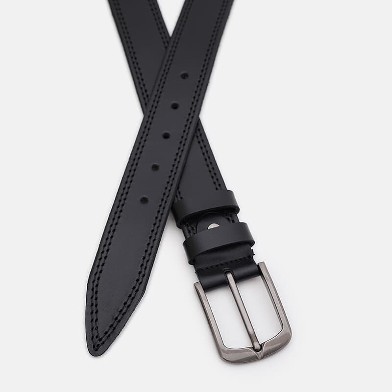 Мужской кожаный ремень. Качественные материалы, стильная пряжка и аккуратный внешний вид. Ремень выполнен из натуральной кожи и металлической фурнитуры. Лицевая сторона ремня защищена от влаги, жира и агрессивных сред. Уход – минимальный (сухая чистка). При необходимости ремень можно укоротить самостоятельно до нужной длины.