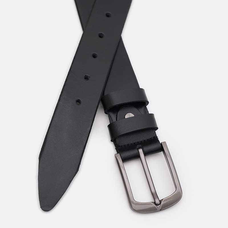 Чоловічий шкіряний ремінь. Якісні матеріали, стильна пряжка та акуратний зовнішній вигляд. Ремінь виконаний з натуральної шкіри та металевої фурнітури. Лицьова сторона ременя захищена від вологи, жиру та агресивних середовищ. Догляд – мінімальний (сухе чищення). При необхідності, ремінь можна вкоротити самостійно до потрібної довжини.