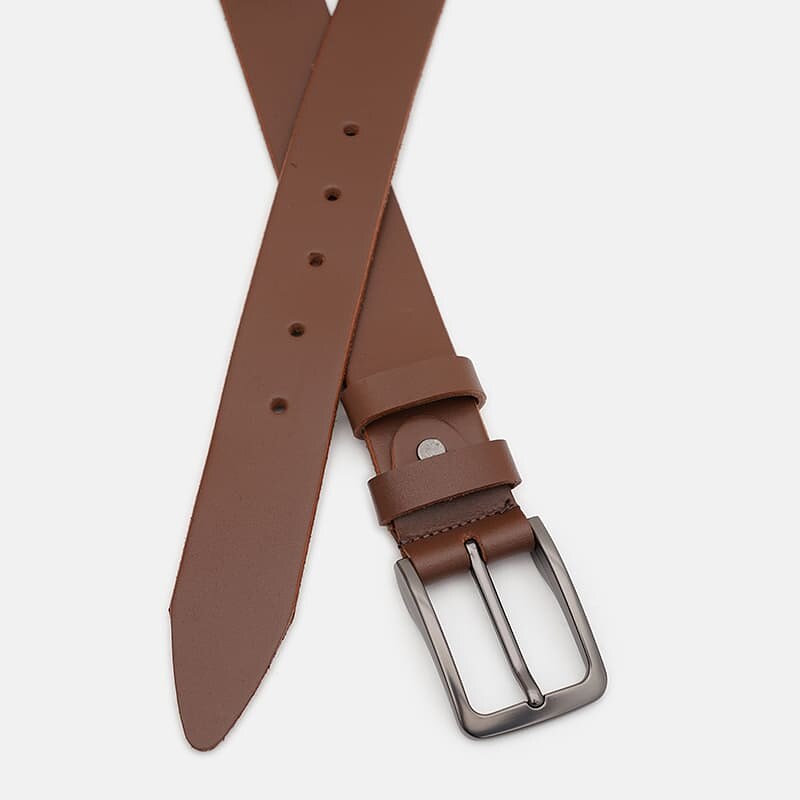Чоловічий шкіряний ремінь. Якісні матеріали, стильна пряжка та акуратний зовнішній вигляд. Ремінь виконаний з натуральної шкіри та металевої фурнітури. Лицьова сторона ременя захищена від вологи, жиру та агресивних середовищ. Догляд – мінімальний (сухе чищення). При необхідності, ремінь можна вкоротити самостійно до потрібної довжини.