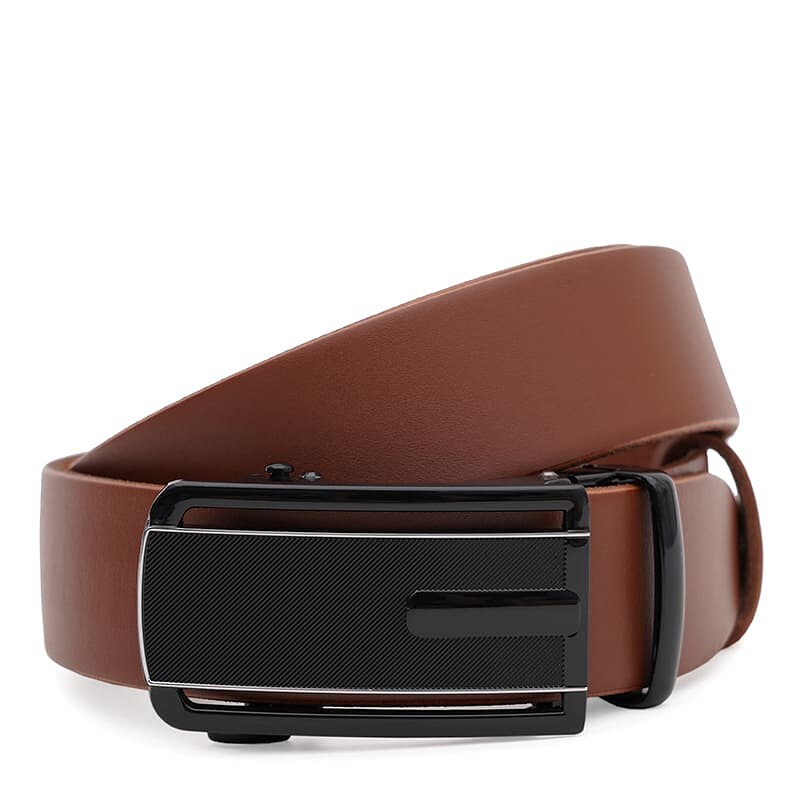 Мужской кожаный ремень. Качественные материалы, стильная пряжка и аккуратный внешний вид. Ремень выполнен из натуральной кожи и металлической фурнитуры. Лицевая сторона ремня защищена от влаги, жира и агрессивных сред. Уход – минимальный (сухая чистка). При необходимости, ремень можно укоротить самостоятельно до нужной вам длины.