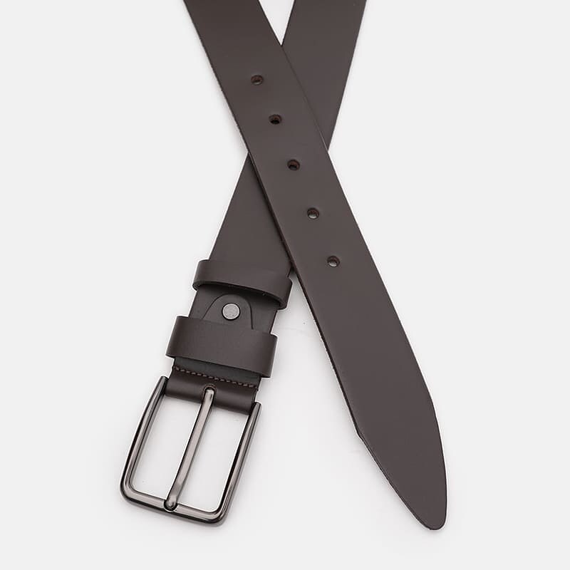 Мужской кожаный ремень. Качественные материалы, стильная пряжка и аккуратный внешний вид. Ремень выполнен из гладкой натуральной кожи и металлической фурнитуры. Лицевая сторона ремня защищена от влаги, жира и агрессивных сред. Уход – минимальный (сухая чистка). При необходимости, ремень можно укоротить самостоятельно до нужной вам длины.