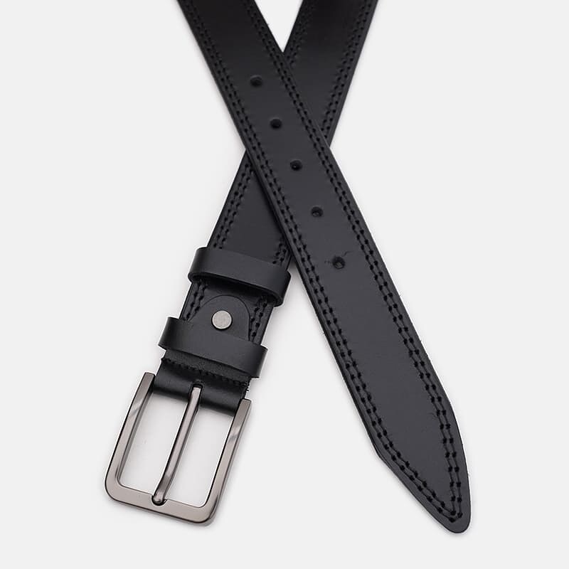 Мужской кожаный ремень. Качественные материалы, стильная пряжка и аккуратный внешний вид. Ремень выполнен из натуральной кожи и металлической фурнитуры. Лицевая сторона ремня защищена от влаги, жира и агрессивных сред. Уход – минимальный (сухая чистка). При необходимости, ремень можно укоротить самостоятельно до нужной вам длины.