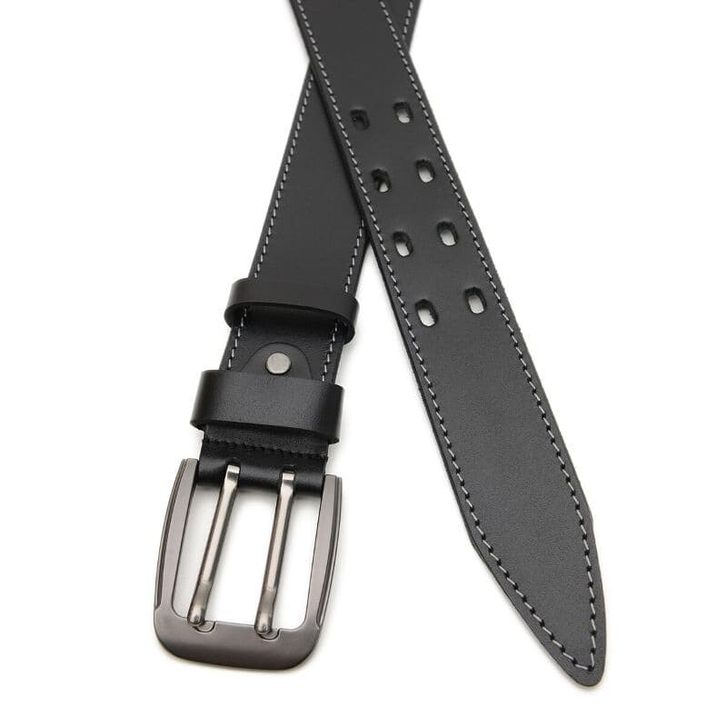 Мужской кожаный ремень. Качественные материалы, стильная пряжка и аккуратный внешний вид. Ремень выполнен из натуральной кожи и металлической фурнитуры. Сделано в Украине. Лицевая сторона ремня защищена от влаги, жира и агрессивных сред. Уход – минимальный (сухая чистка). При необходимости, ремень можно укоротить самостоятельно до нужной вам длины.