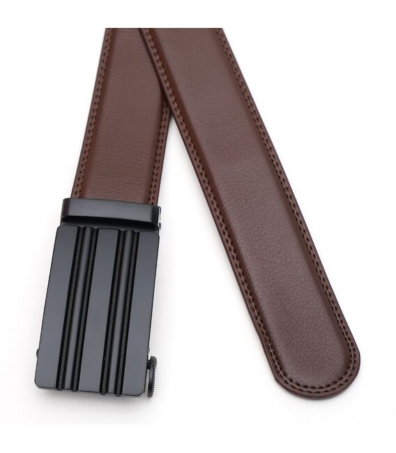 Мужской кожаный ремень. Качественные материалы, стильная автоматическая пряжка и аккуратный внешний вид. Ремень выполнен из натуральной кожи и металлической фурнитуры. Лицевая сторона ремня защищена от влаги, жира и агрессивных сред. Уход – минимальный (сухая чистка). При необходимости, ремень можно укоротить самостоятельно до нужной вам длины.