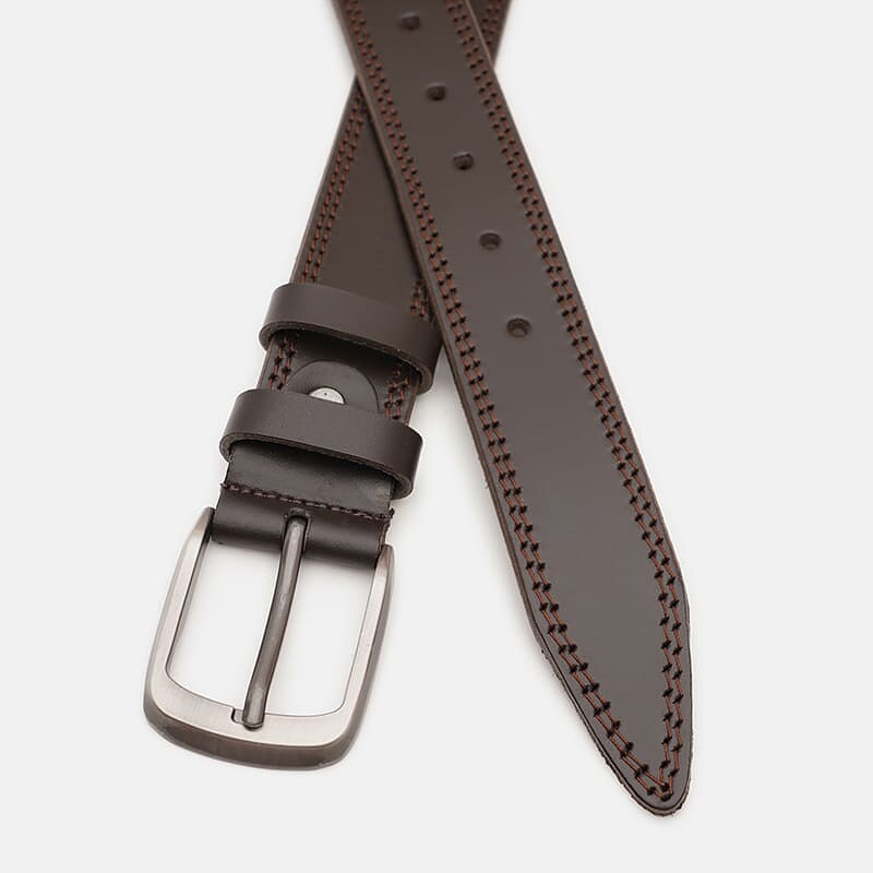 Мужской кожаный ремень. Качественные материалы, стильная пряжка и аккуратный внешний вид. Ремень выполнен из натуральной украинской кожи и металлической фурнитуры. Лицевая сторона ремня защищена от влаги, жира и агрессивных сред. Уход – минимальный (сухая чистка). При необходимости, ремень можно укоротить самостоятельно до нужной вам длины.