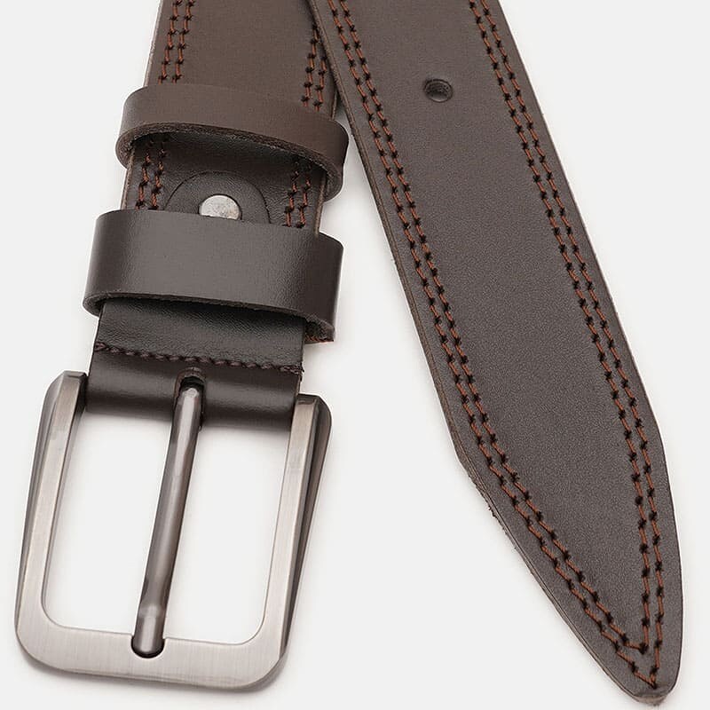 Мужской кожаный ремень. Качественные материалы, стильная пряжка и аккуратный внешний вид. Ремень выполнен из натуральной украинской кожи и металлической фурнитуры. Лицевая сторона ремня защищена от влаги, жира и агрессивных сред. Уход – минимальный (сухая чистка). При необходимости, ремень можно укоротить самостоятельно до нужной вам длины.
