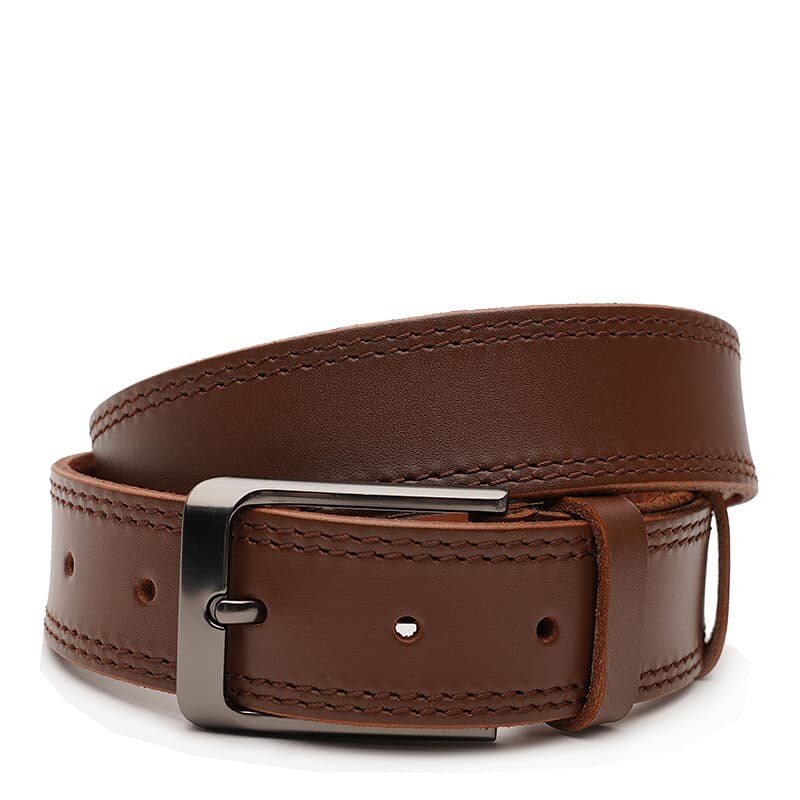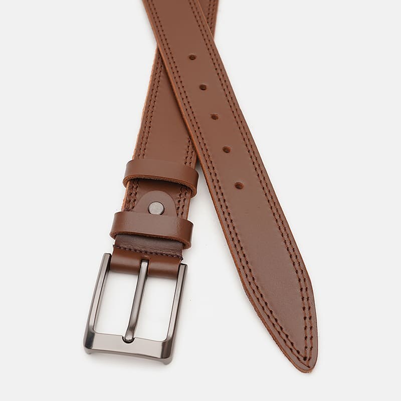 Мужской кожаный ремень. Качественные материалы, стильная пряжка и аккуратный внешний вид. Ремень выполнен из натуральной украинской кожи и металлической фурнитуры. Лицевая сторона ремня защищена от влаги, жира и агрессивных сред. Уход – минимальный (сухая чистка). При необходимости, ремень можно укоротить самостоятельно до нужной вам длины.