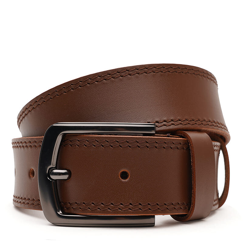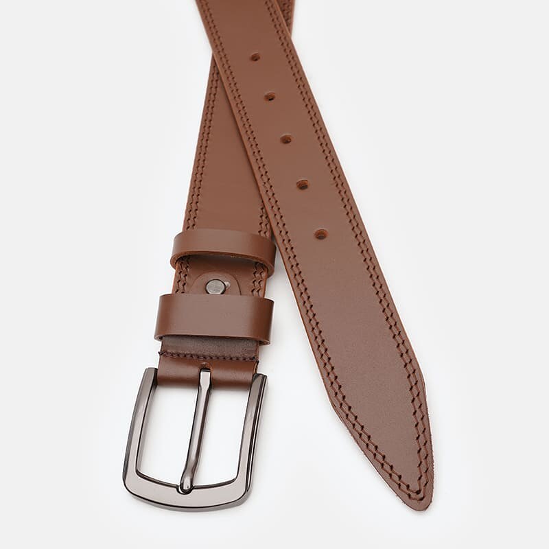 Мужской кожаный ремень. Качественные материалы, стильная пряжка и аккуратный внешний вид. Ремень выполнен из натуральной украинской кожи и металлической фурнитуры. Лицевая сторона ремня защищена от влаги, жира и агрессивных сред. Уход – минимальный (сухая чистка). При необходимости, ремень можно укоротить самостоятельно до нужной вам длины.