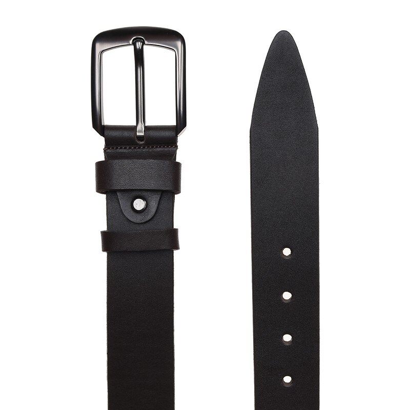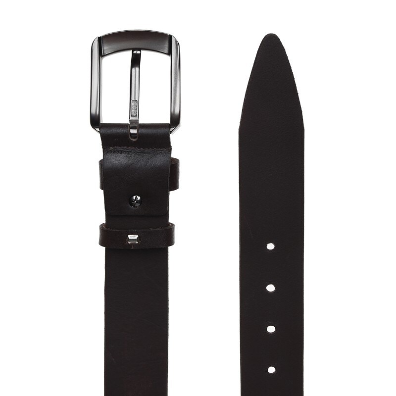 Достойный мужской аксессуар, который отлично подойдёт для повседневной носки. Качественные материалы, стильная металлическая пряжка и аккуратный внешний вид. Покупая кожаный ремень, вы уже очень сильно экономите, ведь он прослужит вам годы. Ремень выполнен из натуральной телячьей кожи и металлической фурнитуры. Лицевая сторона ремня защищена от влаги, жира и агрессивных сред. Уход – минимальный, при необходимости (сухая чистка).
