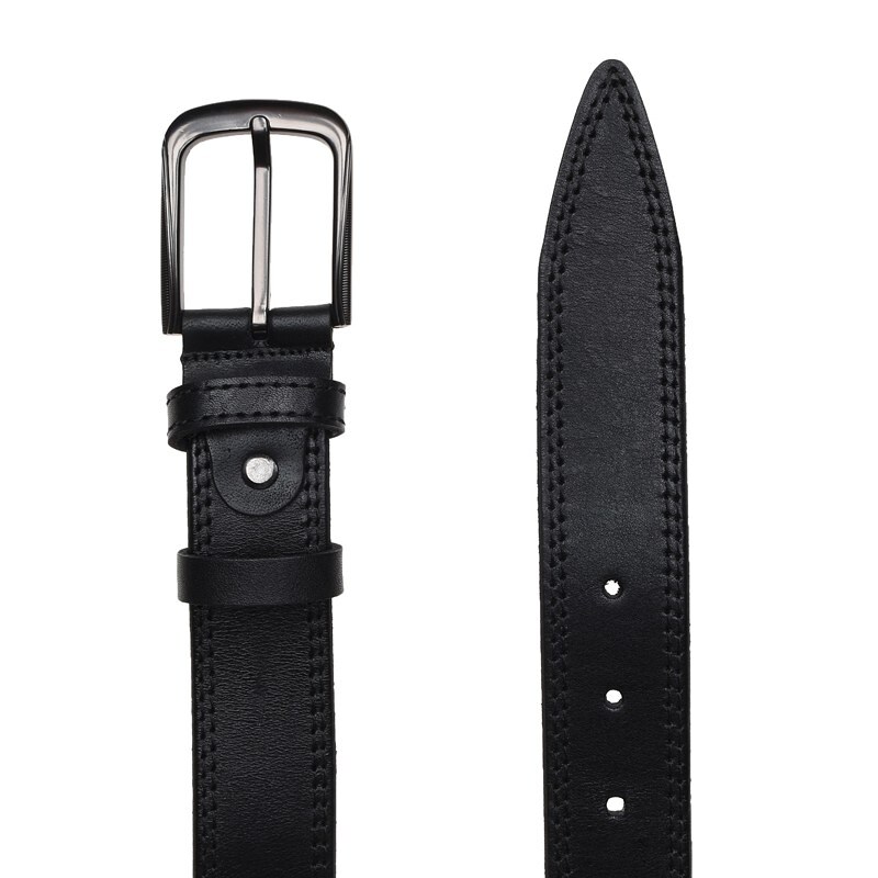Достойный мужской аксессуар, который отлично подойдёт для повседневной носки. Качественные материалы, стильная металлическая пряжка и аккуратный внешний вид. Покупая кожаный ремень, вы уже очень сильно экономите, ведь он прослужит вам годы. Ремень выполнен из натуральной телячьей кожи и металлической фурнитуры. Лицевая сторона ремня защищена от влаги, жира и агрессивных сред. Уход – минимальный, при необходимости (сухая чистка).