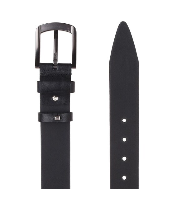 Мужской кожаный ремень. Качественные материалы, стильная металлическая пряжка и аккуратный внешний вид. Ремень выполнен из натуральной телячьей кожи и металлической фурнитуры. Лицевая сторона ремня защищена от влаги, жира и агрессивных сред. Уход – минимальный, при необходимости (сухая чистка).