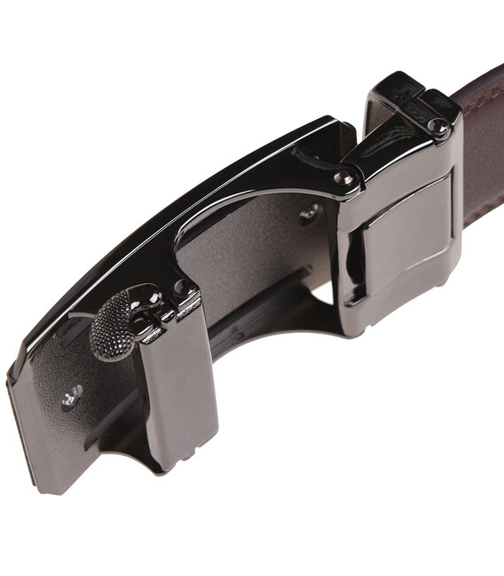 Мужской кожаный ремень с пряжкой автомат. Ремень выполнен из натуральной кожи и металлической фурнитуры. При необходимости ремень можно укоротить под свой размер. Лицевая сторона ремня защищена от влаги, жира и агрессивных сред. Уход – минимальный (сухая чистка).