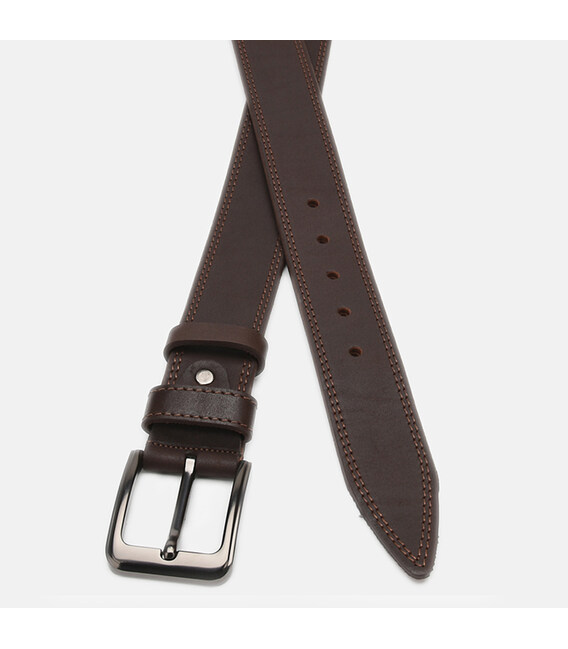 Мужской кожаный ремень. Качественные материалы, стильная пряжка и аккуратный внешний вид. Ремень выполнен из натуральной кожи и металлической фурнитуры. Покупая кожаный ремень, вы уже очень сильно экономите, ведь он прослужит вам годы. Сделано в Украине. При необходимости ремень можно укоротить под свой размер. Лицевая сторона ремня защищена от влаги, жира и агрессивных сред. Уход – минимальный (сухая чистка).