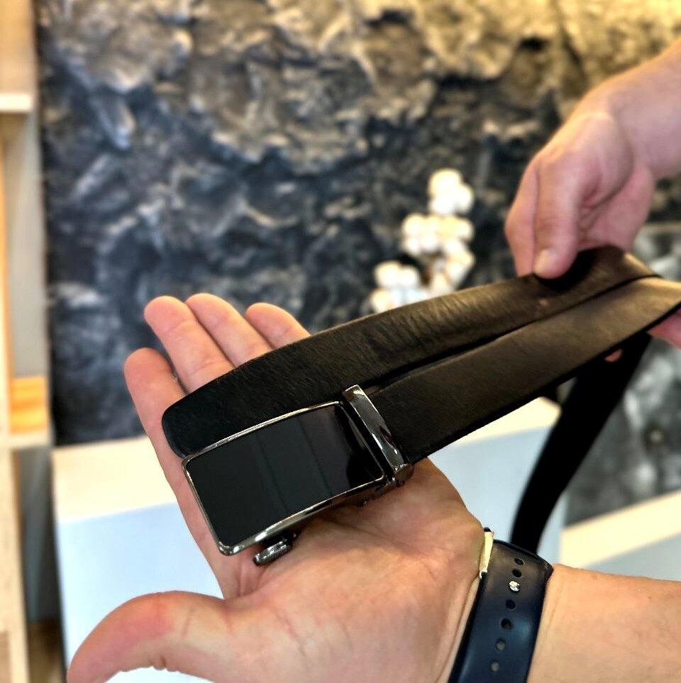 Мужской кожаный ремень. Качественные материалы, стильная пряжка и аккуратный внешний вид. Ремень выполнен из натуральной кожи и металлической фурнитуры. Покупая кожаный ремень, вы уже очень сильно экономите, ведь он прослужит вам годы. При необходимости ремень можно укоротить под свой размер. Лицевая сторона ремня защищена от влаги, жира и агрессивных сред. Уход – минимальный (сухая чистка).