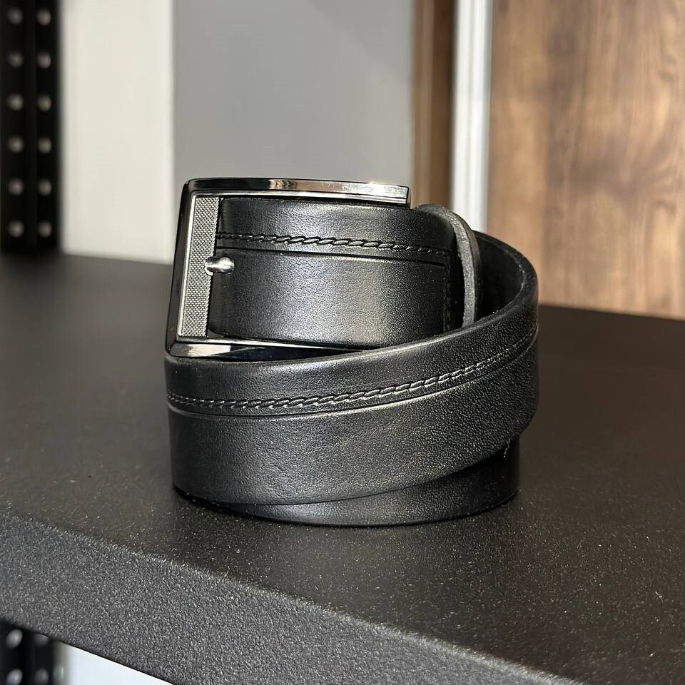 Мужской кожаный ремень. Качественные материалы, стильная пряжка и аккуратный внешний вид. Ремень выполнен из натуральной кожи и металлической фурнитуры. Покупая кожаный ремень, вы уже очень сильно экономите, ведь он прослужит вам годы. При необходимости ремень можно укоротить под свой размер. Лицевая сторона ремня защищена от влаги, жира и агрессивных сред. Уход – минимальный (сухая чистка).