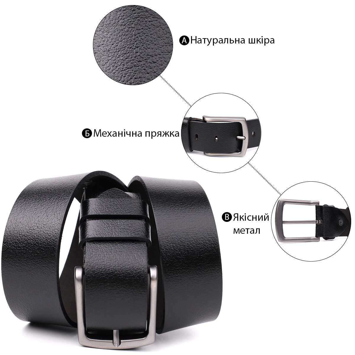Стильный и функциональный аксессуар, созданный для современного мужчины, который ценит качество и практичность. Изготовлен из натуральной кожи высокого качества, что гарантирует долговечность и приятную текстуру. Классический черный цвет делает ремень универсальным — он идеально сочетается как с деловыми костюмами, так и с повседневной одеждой.