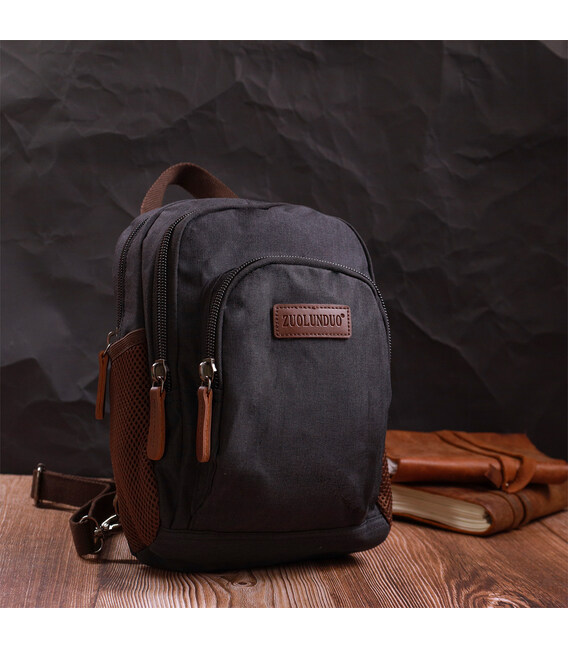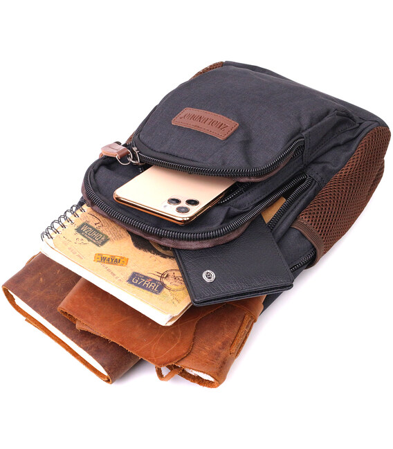 Описание Интересный рюкзак из полиэстера с большим количеством карманов Vintage 22148 Черный