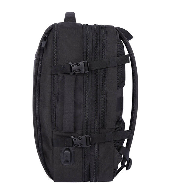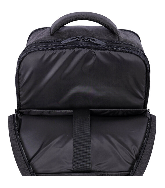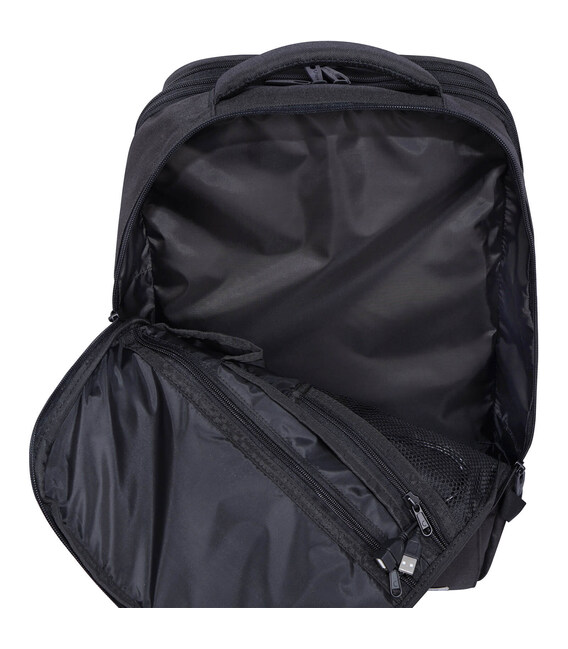 Рюкзак має основне відділення з блискавкою по периметру, яке можна повністю відкрити та легко розкласти необхідні речі. Додатково є відсік із сіткою для аксесуарів та окрема кишеня з застібкою для надійної фіксації ноутбука чи планшета. Ззовні спереду наявні невеликі відсіки для дрібниць, а ззаду — кишеня «Антизлодій» для зберігання цінних речей.