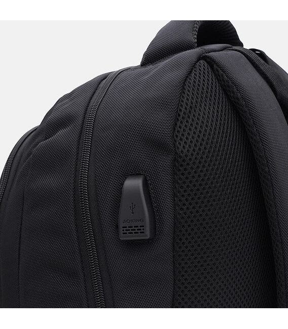 Рюкзак Aoking выполнен из прочного материала. Вмещает ноутбук, подходит для повседневного использования и путешествий. Имеет одно отделение на молниии и 1 карман внутри. С лицевой стороны- 2 кармана на молнии и 2 боковых кармана. Имеется USB. Спинка со специальными вставками для комфортного ношения. Подкладка-текстиль. Лямки регулируются по длине.