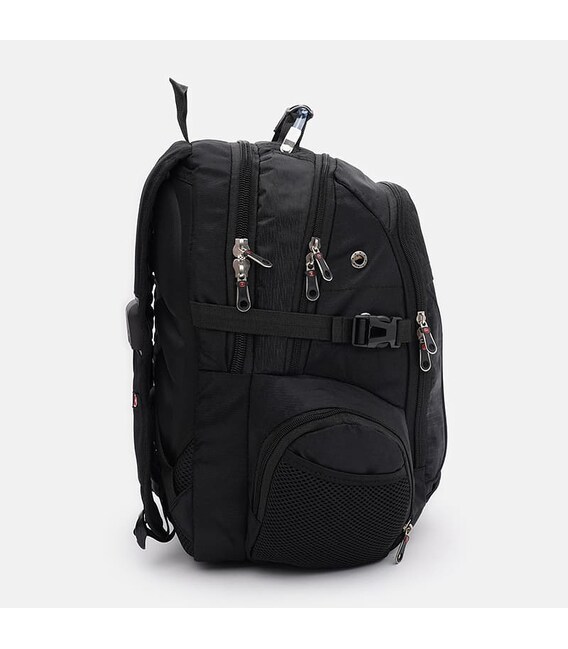 Это отличная модель рюкзака из прочного материала, который можно использовать для города, путешествий и занятий спортом. Выполнен из специального материала, который отталкивает влагу. Также рюкзак отлично пропускает воздух, что обеспечивает правильное хранение вещей. Ортопедическая спинка дает возможность равномерно распределить вес по спине. Имеет накидку от дождя, выходы для наушников, USB порт, усиленную ручку на тросу. Рюкзак имеет 3 отделения на молниях, внутри 3 функциональных кармана для телефона и других нужных аксессуаров. Снаружи -2 средних вместительных кармана. Подкладка текстиль. Качественные прочные плечевые ремни регулируются по длине.