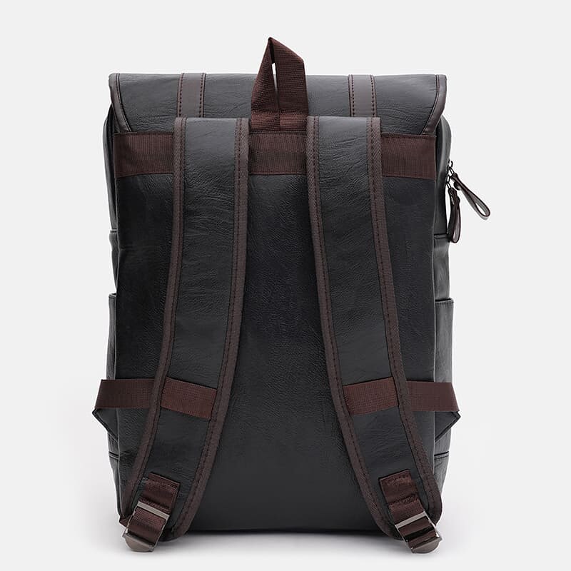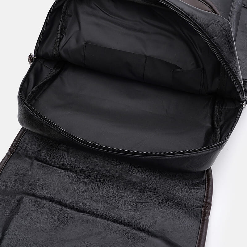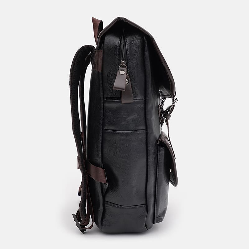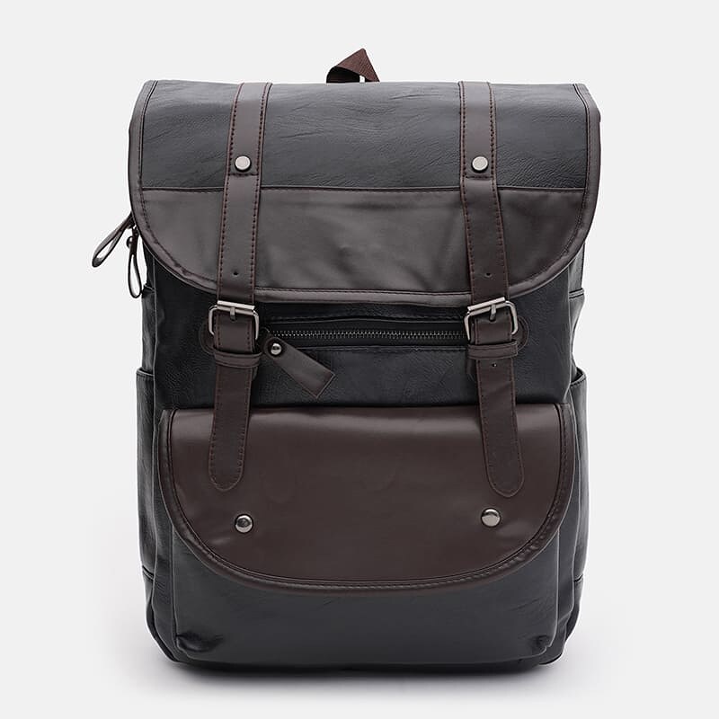 Рюкзак выполнен из искусственной кожи. Подходит для города, учебы и путешествий. Имеет 1 основное отделение, закрывается на клапан, внутри 3 кармана. С лицевой стороны 1 кармана на молнии и 1 карман на кнопках. Подкладка полиэстер. Плечевые ремни регулируются по длине.