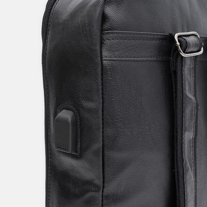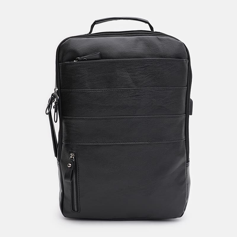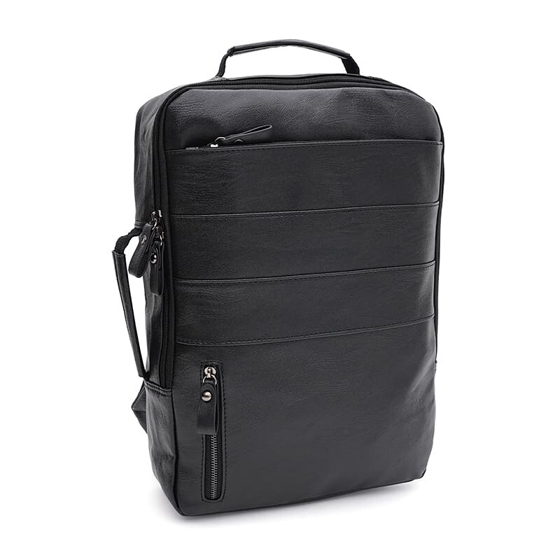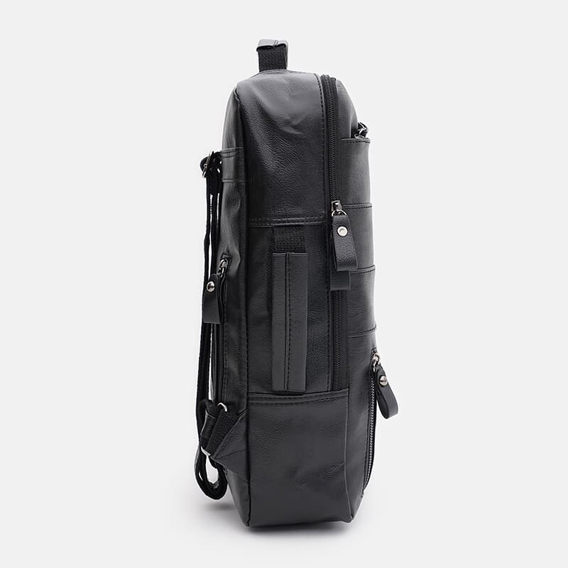 Мужской рюкзак выполнен из качественной искусственной кожи. Главное отделение закрывается на молнию. Внутри 3 кармана для телефона и мелочей. С лицевой стороны есть 2 кармана на молнии, с тыльной -1 карман. С боковых сторон -2 кармана. Подкладка-текстиль. Несъемные лямки регулируются по длине.