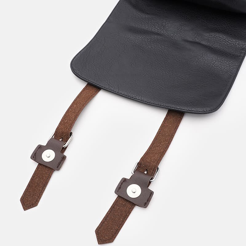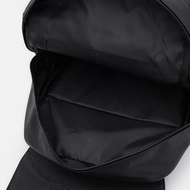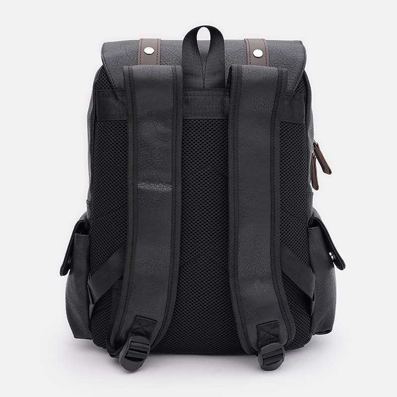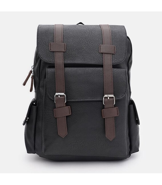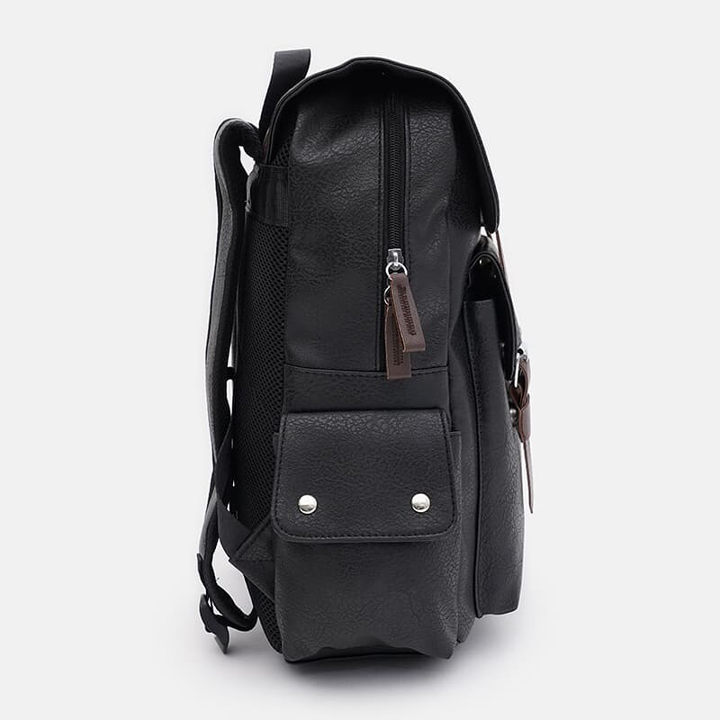Мужской рюкзак выполнен из качественной искусственной кожи. Главное отделение закрывается на молнию. Внутри 3 кармана для телефона и мелочей. С внешней стороны есть 1 карман на кнопках, а также с боков – по 1 карман на кнопках. Подкладка-текстиль. Несъемные лямки регулируются по длине.