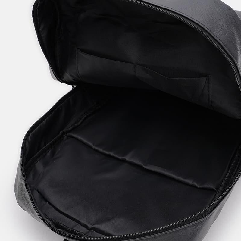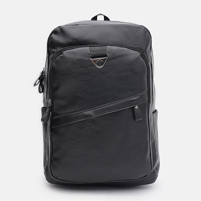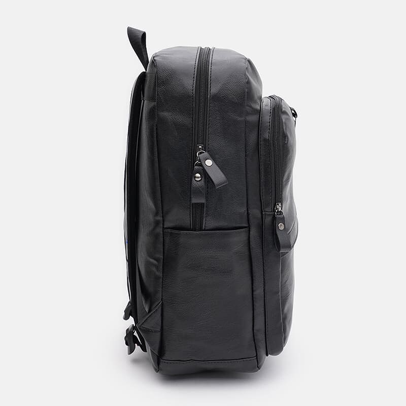Мужской рюкзак выполнен из качественной искусственной кожи. Главное отделение закрывается на молнию. Внутри 3 кармана для телефона и мелочей. С лицевой стороны есть 2 кармана на молнии, также по бокам - по 1 карману. Подкладка-текстиль. Несъемные лямки регулируются по длине.
