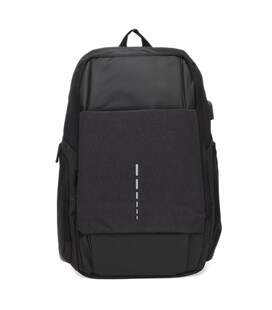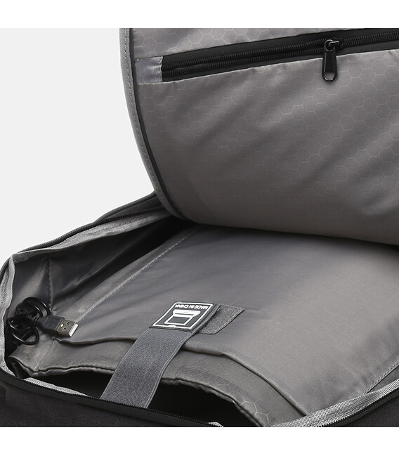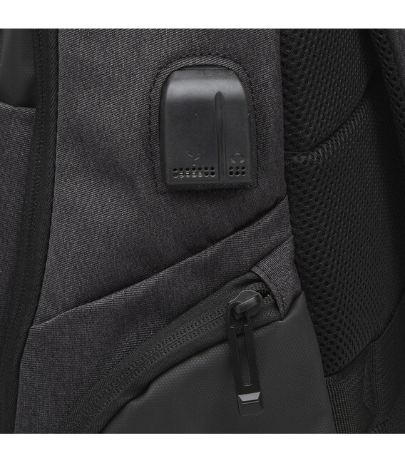 Рюкзак выполнен из прочного материала. Подходит для носки ноутбука, повседневного использования и для путешествий. Имеет основное отделение для вещей, отделение для ноутбука, 2 кармана для телефона и других нужных вещей. Снаружи 2 боковых кармана на молнии. Есть USB порт и провод. Спинка рюкзака дышащая и вентилируемая, лямки легко регулируются, фиксируя рюкзак на спине. Подкладка- текстиль.