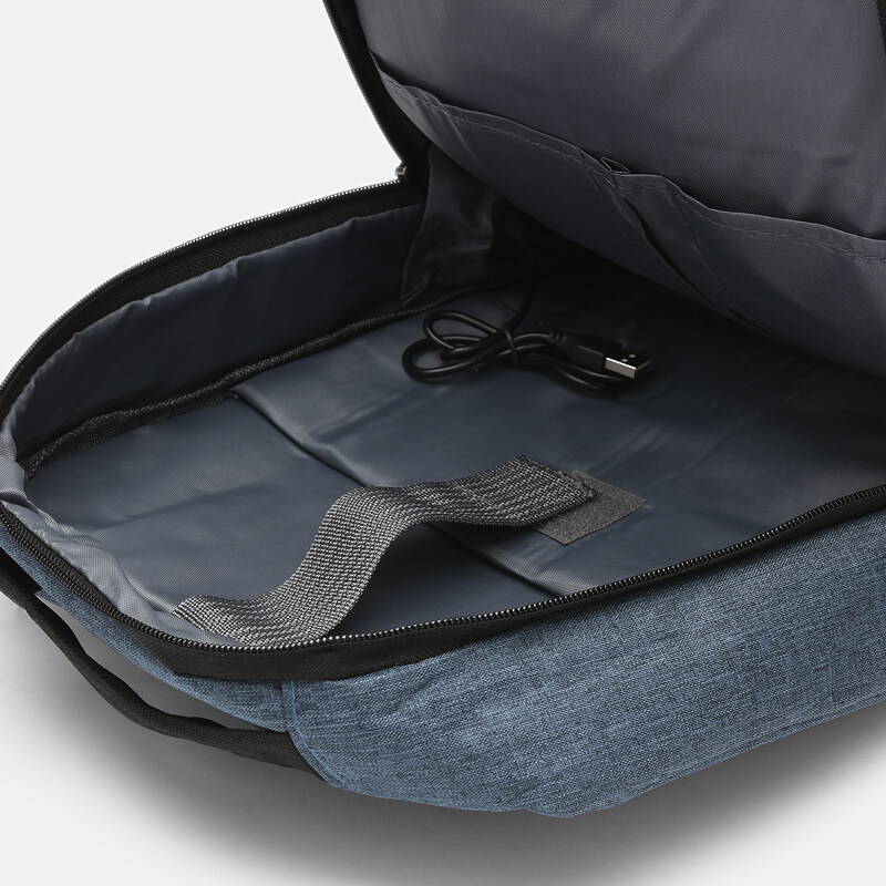 Рюкзак-практичный аксессуар на каждый день. Подходит для работы, прогулок и путешествий. Имеет одно основное отделение на молнии. Отдел под ноутбук и 2 кармана, небольшие отделы для ручек. С лицевой стороны имеется 2 кармана на молнии, 1 боковой карман и USB разъем и провод. Подкладка- текстиль. Плечевые ремни регулируются по длине.
