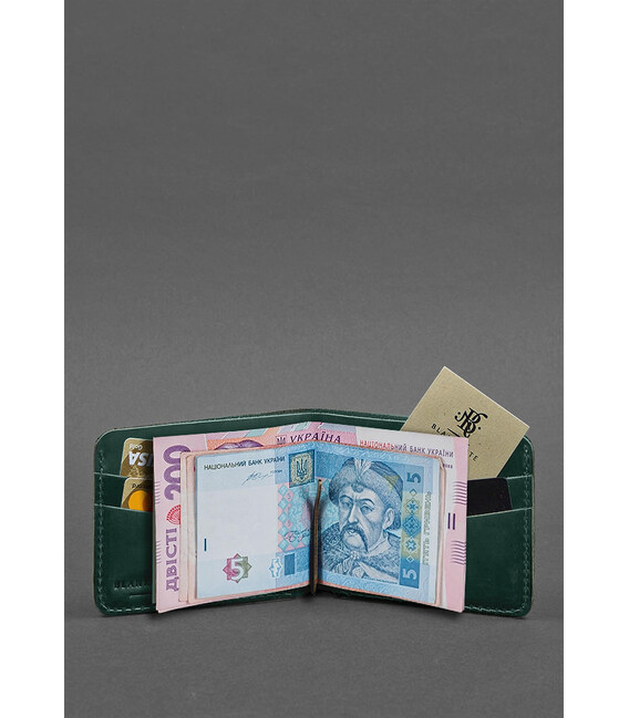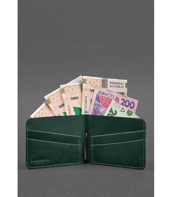 Описание Кожаное портмоне 4.4 (с зажимом) зеленый Crazy Horse