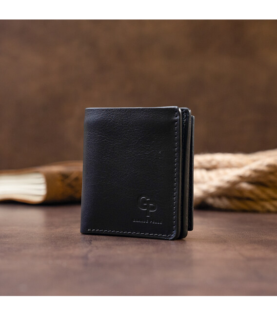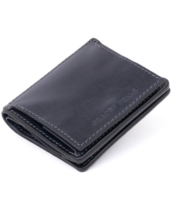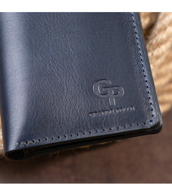 Описание Вертикальное глянцевое портмоне с накладной монетницей GRANDE PELLE 11332 Синее