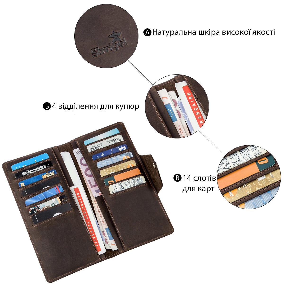 Вертикальный мужской кожаный бумажник с классическим дизайном. Изделие отличается своей прочностью и шикарным внешним видом. Дополнен бумажник серебристой фурнитурой. Закрывается модель на две кнопки – вы можете самостоятельно регулировать наполненность изделия, закрыв его на ближнюю или дальнюю кнопку. Изделие поместится в ваш портфель или сумку, не имеет тяжелого веса. Прекрасно лежит в руке. На лицевой стороне тисненый логотип бренда. Если вы в поисках подарка – советуем вам данную модель – она доступны в разных цветах и является очень выигрышной.
