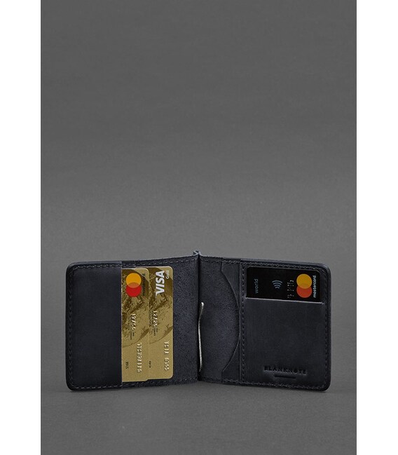 Мужское кожаное портмоне синее 1.0 зажим для денег