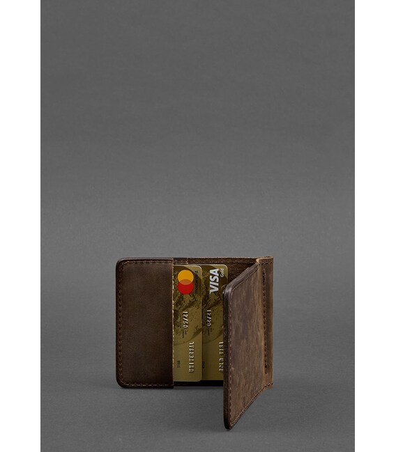 С одной стороны, это банальный зажим для денег, а с другой - он супер-удобный, потому что в нем есть множество очень удобных кармашков для пластиковых карточек и для небольших записок-бумажек! Так что это не просто зажим для денег, а полноценное портмоне. Подходит для любых купюр, в том числе - для евро и долларов.Сделано полностью вручную в нашей мастерской в Киеве. НАСКОЛЬКО ФУНКЦИОНАЛЕН ЗАЖИМ ДЛЯ ДЕНЕГ?Стандартная вместительность зажимов для денег – 15 купюр. Учитывая существующие номиналы украинских гривен, этого вполне достаточно для хранения однодневного финансового запаса. В любом случае, дополнительным подспорьем всегда будет кредитная карта, для которой предусмотрено дополнительное отделение.КАК ПОЧИНИТЬ ЗАЖИМ ДЛЯ ДЕНЕГ Важно знать, что при активном использовании металлическая заколка может со временем ослабевать. Это обычное положение дел, которое легко исправляется. Достаточно снять заколку с кожаного чехла и подкрутить ослабевшую пружину. Всё снова будет работать, как по маслу.В целом же, качественный аксессуар способен служить десятилетиями. Главное отдавать предпочтение натуральной коже и ручной работе. Эти две составляющих обеспечат долгий срок службы изделию.Гарантия на портмоне - 3 года с момента покупки.ВНИМАНИЕ! Выделка данной кожи предполагает естественное появление на ней царапин и потертостей в ходе использования! От этого изделие становится более индивидуальным и приятным, это оценят настоящие поклонники винтажного стиля:) А так же первое время кожа может краситься при сильном трении об другие предметы - это особенность её выделки, постепенно этот эффект уменьшается, кожа полируется и приобретает чуть глянцевый эффект.Фурнитура и комплектация может быть изменена производителем