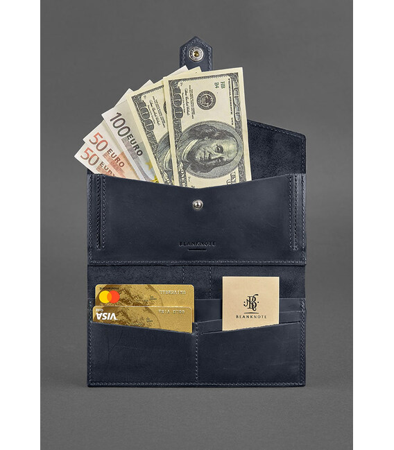 Описание Кожаное портмоне 3.0 синее Crazy Horse