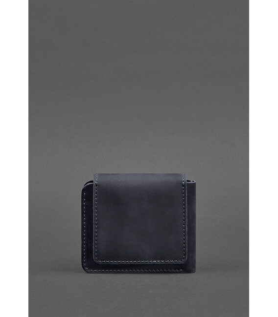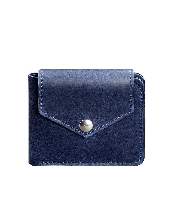 Кожаное портмоне 4.2 на кнопке синее Crazy Horse
