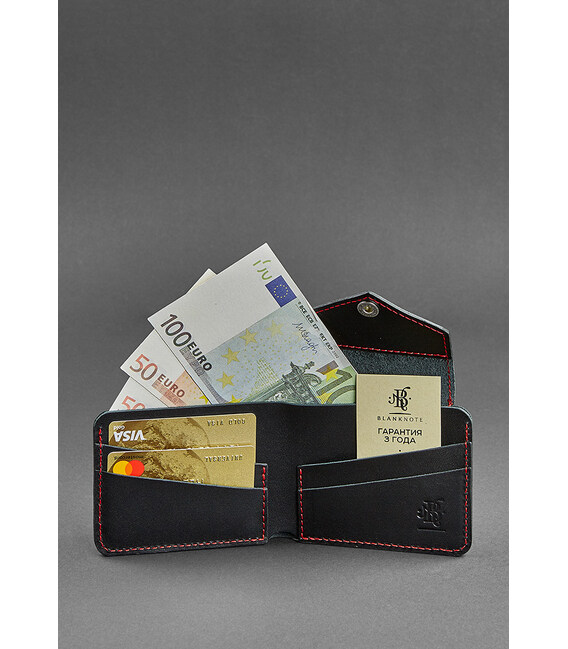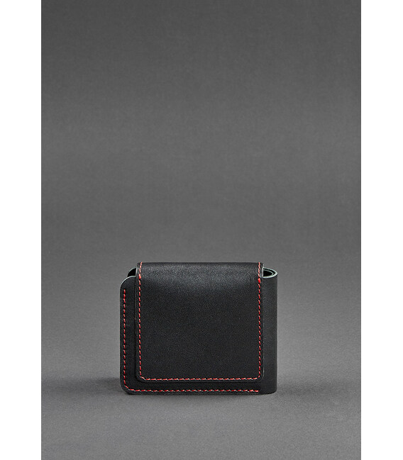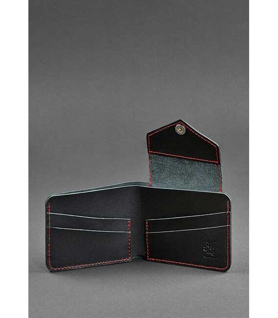 Кожаное портмоне 4.2 на кнопке черное с красной нитью