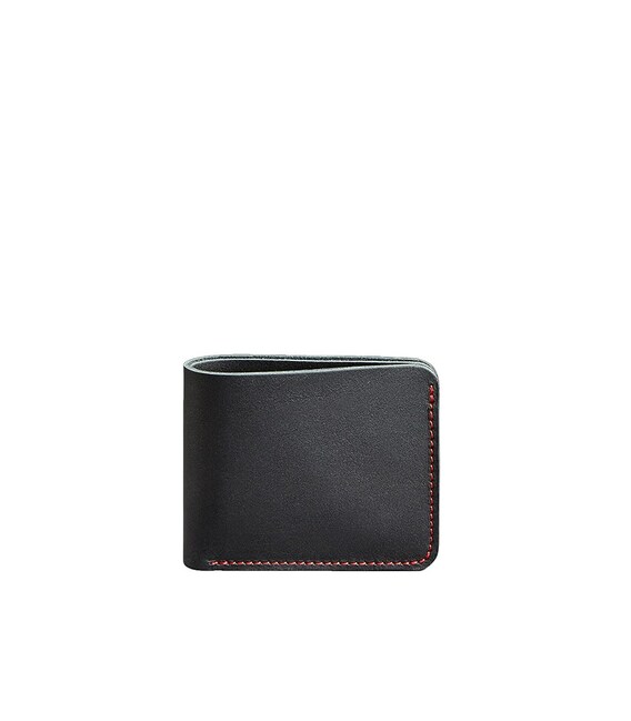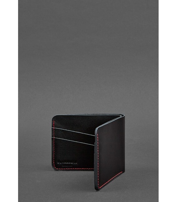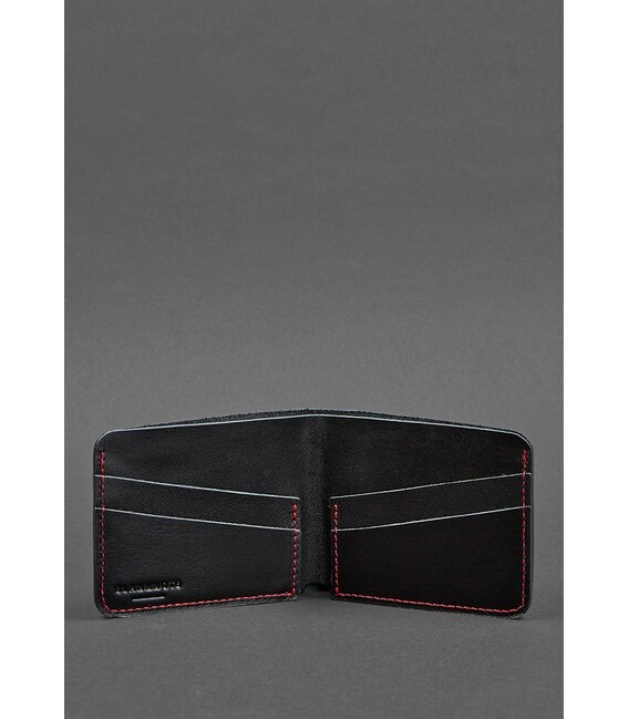 Кожаное портмоне 4.1 (4 кармана) черное с красной нитью