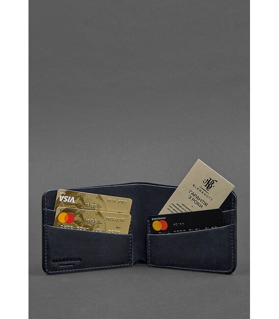Описание Мужское кожаное портмоне 4.1 (4 кармана) синее Crazy Horse