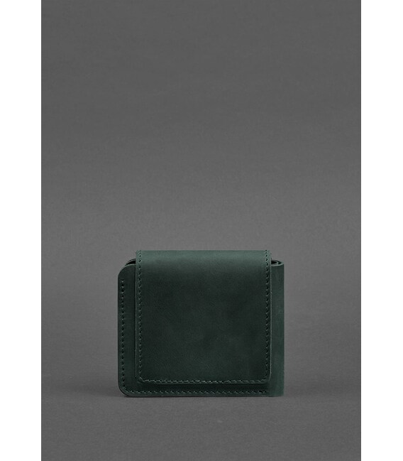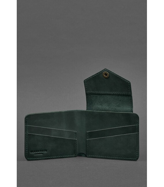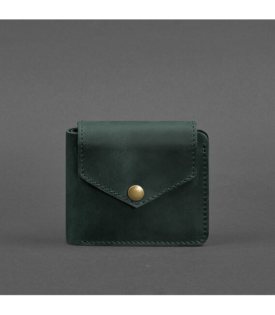 Кожаное портмоне 4.2 на кнопке зеленое Crazy Horse