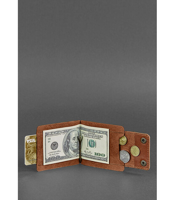 Мужское кожаное портмоне светло-коричневое 10.0 зажим для денег