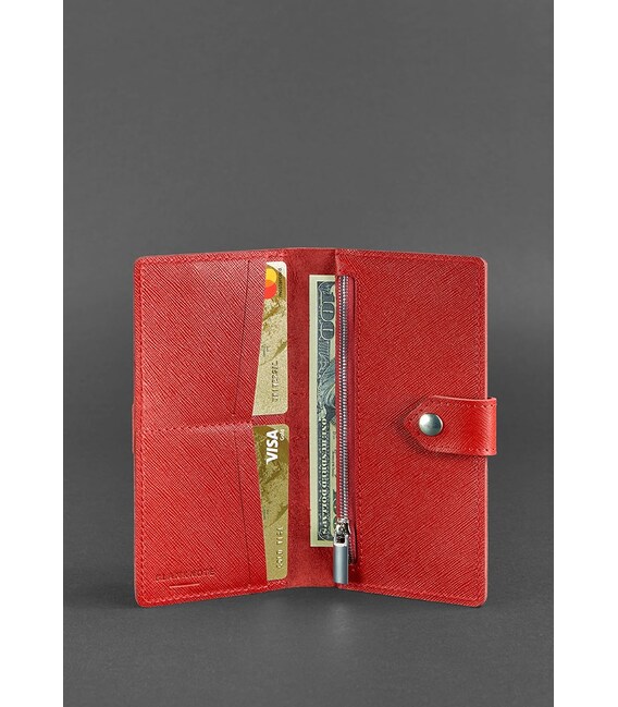 Размер: 19*10 смМатериал: натуральная кожа Saffiano, металлическая фурнитураУпаковка: крафтовая коробкаСтильное портмоне в красном цвете оценят почитательницы ярких и эффектных аксессуаров.Выполнено портмоне из кожи Saffiano.Saffiano – это натуральная кожа с текстурированной поверхностью, которая напоминает кору дерева. Такой эффект достигается благодаря горячему тиснению. Это делает поверхность кожи устойчивой к царапинам и потертостям.Внутри имеется два отделения для купюр и монетница, закрывающаяся на металлическую молнию. Также дополнительно имеется четыре отделения для карточек и визиток.Закрывается портмоне на хлястик с кнопкой.Гарантия на портмоне - 3 года с момента покупки.