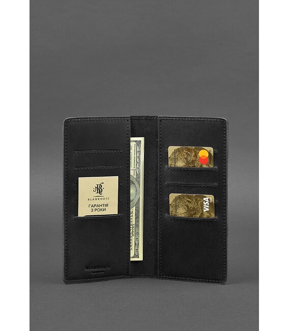 Классическое портмоне-бумажник понравится людям, которые ценят качественные и стильные вещи. Черный цвет аксессуара в тандеме с винтажной натуральной кожей позволит легко сочетать портмоне с деловым образом.Для пошива портмоне использовалась кожа Crazy Horse. Этот вид кожи многие ценят за прочность и плотность. Но главное достоинство Crazy Horse - умение красиво стариться. Мелкие потертости и царапинки остаются на матовой поверхности кожи, добавляя аксессуару изысканного шарма и солидности.Внутри аксессуара имеется два просторных отделения для купюр, чеков, квитанций и небольших документов. Для платежных и дисконтных карточек предусмотрено 10 отделений. Дополнительно имеется карман на задней стенке аксессуара.Гарантия на портмоне - 3 года с момента покупки.ВНИМАНИЕ! Выделка данной кожи предполагает естественное появление на ней царапин и потертостей в ходе использования! От этого изделие становится более индивидуальным и приятным, это оценят настоящие поклонники винтажного стиля:) А так же первое время кожа может краситься при сильном трении об другие предметы - это особенность её выделки, постепенно этот эффект уменьшается, кожа полируется и приобретает чуть глянцевый эффект.Фурнитура и комплектация может быть изменена производителем