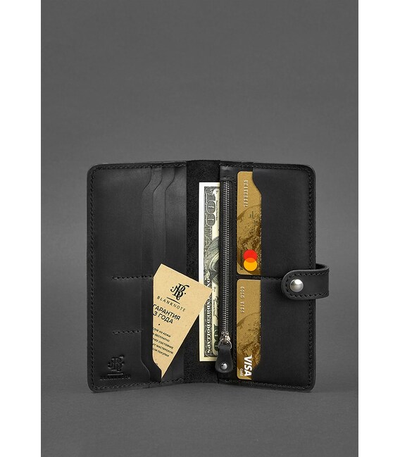 Красивое черное портмоне ручной работы понравиться людям, которые ценят качество и практичность. Изготовлен аксессуар из матовой кожи с винтажным эффектом. Кожа достаточно плотная и хорошо переносит испытания повседневного пользования. Все швы прошиты вручную прочными нитями.Внутри портмоне 9 отделений для карточек, 2 слота для мини-катр. Для купюр предназначено 2 просторных отделения, а также имеется карман на молнии.Закрывается аксессуар на прочную металлическую кнопку.У модели имеется надежная застежка на кнопке.Поместится портмоне в сумке среднего и большого размера. Отлично смотрится, как самостоятельный аксессуарГарантия на портмоне - 3 года с момента покупки.ВНИМАНИЕ! Выделка данной кожи предполагает естественное появление на ней царапин и потертостей в ходе использования! От этого изделие становится более индивидуальным и приятным, это оценят настоящие поклонники винтажного стиля:) А так же первое время кожа может краситься при сильном трении об другие предметы - это особенность её выделки, постепенно этот эффект уменьшается, кожа полируется и приобретает чуть глянцевый эффект.Фурнитура и комплектация может быть изменена производителем
