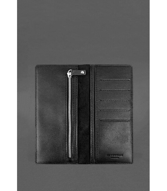 Вместительный бумажник в универсальном черном цвете станет отличным хранителем для Ваших карточек, купюр и документов. Изготовлен аксессуар полностью вручную из прочной натуральной кожи Краст.Внутри портмоне имеется 2 отделения для купюр и 5 слотов для карточек и визиток. Также есть карман на на молнии.Мы уверены, что такой стильный черный купюрник из натуральной кожи станет отличным дополнением делового образа, а ручная работа подчеркнет индивидуальность обладателя.Гарантия на кошелек - 3 года с момента покупки.Фурнитура и комплектация может быть изменена производителем